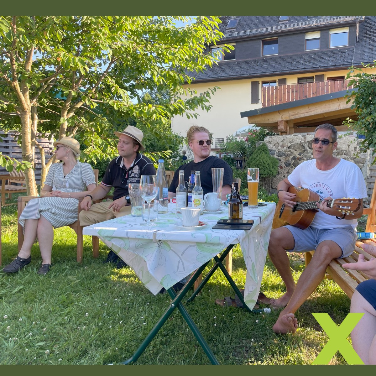 So nahm das Fest seinen Lauf, so muss Sommer sein. Planschende Kids, chillende Menschen im Schatten und tierische Begleitung. Besonders schön war es, dass die Kolleginnen und Kollegen aus der Ferne extra von weiter her angereist sind, nur um mit uns anzustoßen.