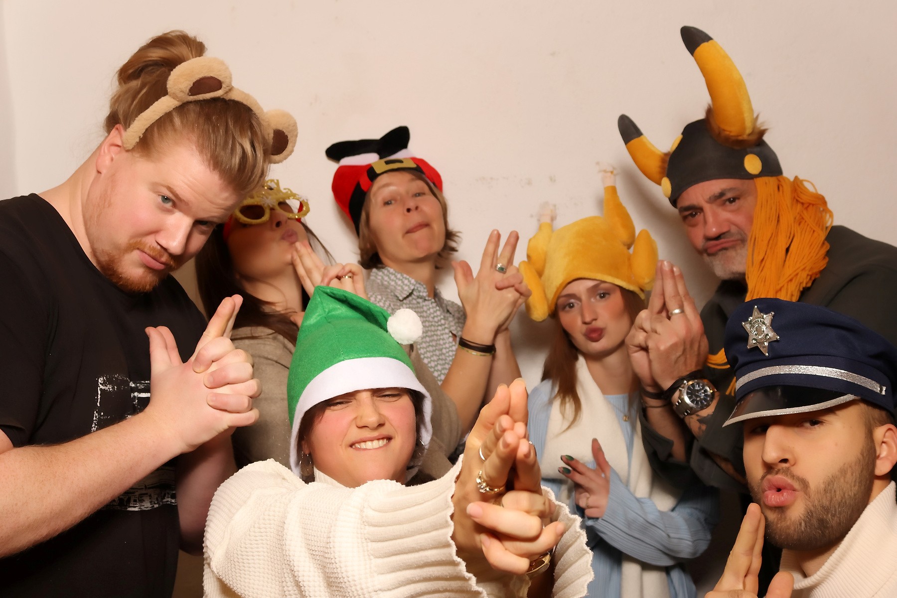Die Fotobox? Ganz klar der Hit des Abends. Es gab seriöse, weniger seriöse und chaotische Bilder, unzählige kreative Posen, wilde Accessoires und Kolleg:innen, die man den ganzen Abend über nur dort angetroffen hat. Eine kleine Kostprobe, was dabei rauskam, findet ihr in den Bildern, einschließlich der Meta-Version „Foto im Foto im Foto“. Kunst ist eben, was man draus macht.